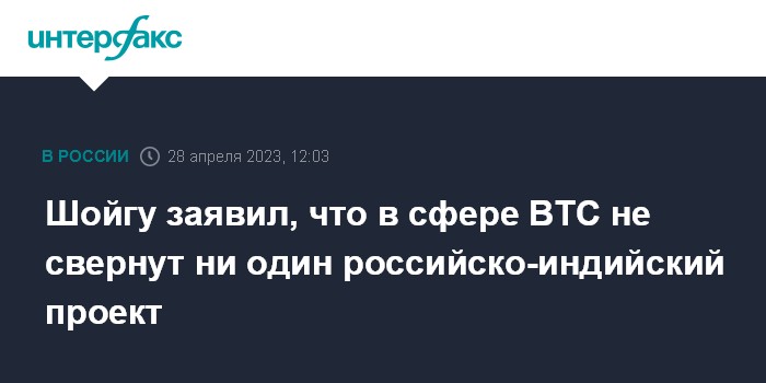 Шойгу заявил, что в сфере ВТС не свернут ни один российско-индийский проект