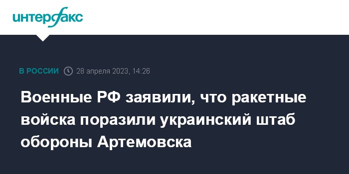 Военные РФ заявили, что ракетные войска поразили украинский штаб обороны Артемовска