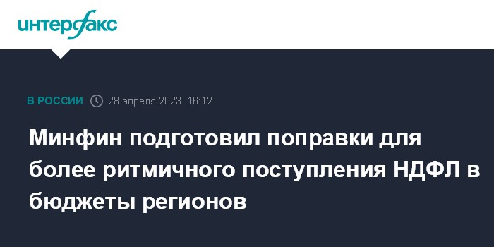 Минфин подготовил поправки для более ритмичного поступления НДФЛ в бюджеты регионов