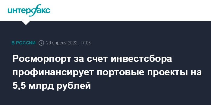 Москва. 28 апреля. INTERFAX.RU - ФГУП "Росморпорт" (подведомственное Росморречфлоту) в 2023 году планирует направить 5,5 млрд рублей на финансирование портовой инфраструктуры, сообщил в "Экспертном клубе ЭСП" начальник управления инвестиций и стратегического развития ФГУП "Росморпорт" Андрей Болдорев.