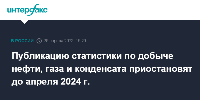 Публикацию статистики по добыче нефти, газа и конденсата приостановят до апреля 2024 г.