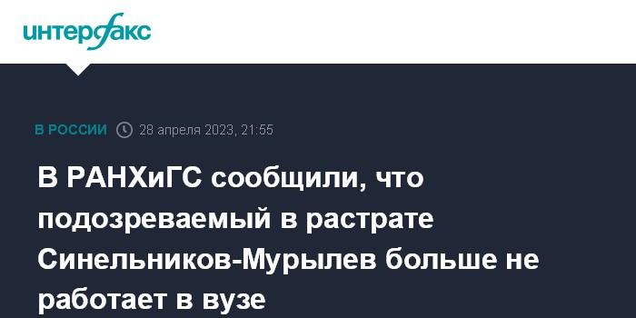 "Сергей Германович Синельников-Мурылев в настоящее время не является сотрудником РАНХиГС", - сообщили "Интерфаксу" в пресс-службе РАНХиГС.