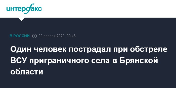 Москва. 30 апреля. INTERFAX.RU - Губернатор Брянской области Александр Богомаз сообщил об обстреле с украинской стороны приграничного села.