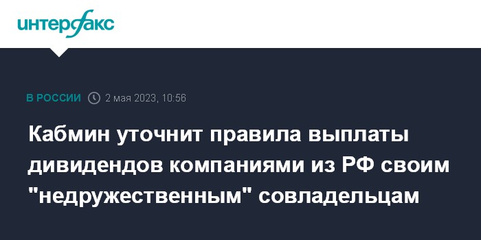 Кабмин уточнит правила выплаты дивидендов компаниями из РФ своим "недружественным" совладельцам