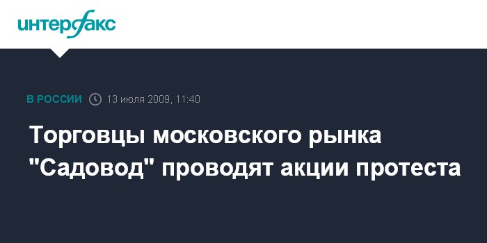 Москва. 13 июля. INTERFAX.RU - Как передает корреспондент "Интерфакса", в понедельник порядка 300 человек из числа работников и торговцев столичного рынка "Садовод", известного как "Птичий рынок", проводят акции протеста, которая началась в 11:00. Участники митинга выступают против передачи их торговых точек в аренду торговцам из Китая, оставшимся без работы в связи с закрытием Черкизовского рынка.