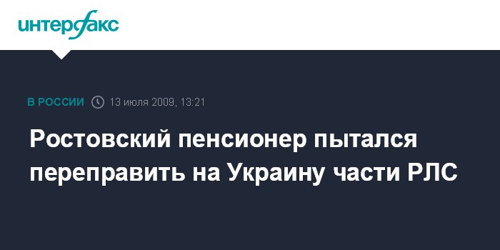 Ростов-на-Дону. 13 июля. INTERFAX.RU - Южная транспортная прокуратура признала законным решение дознавателя Южной оперативной таможни о возбуждении уголовного дела по ч.2 ст. 188 УК РФ (контрабанда военной техники) в отношении местного пенсионера, который пытался переправить на Украину части радиолокационной станции (РЛС).