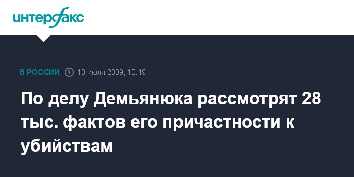 Берлин. 13 июля. INTERFAX.RU - Суд над бывшим охранником немецкого концентрационного лагеря "Собибор" Иваном (Джоном) Демьянюком будет проходить по "27,9 тыс. фактам причастности к убийствам", заявил в понедельник представитель прокуратуры Мюнхена.