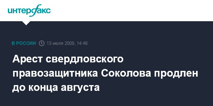 Екатеринбург. 13 июля. NTERFAX.RU - Верх-Исетский районный суд Екатеринбурга продлил сроки содержания под стражей правозащитника Алексея Соколова до 23 августа.