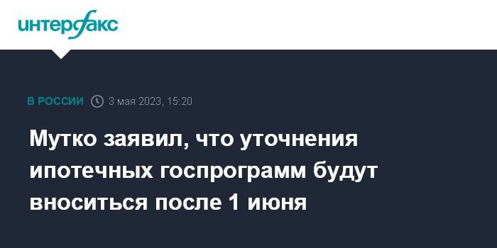Москва. 3 мая. INTERFAX.RU - Предложения по изменениям в ипотечные госпрограммы будут вноситься после 1 июня, сообщил генеральный директор ДОМ.РФ Виталий Мутко в среду.