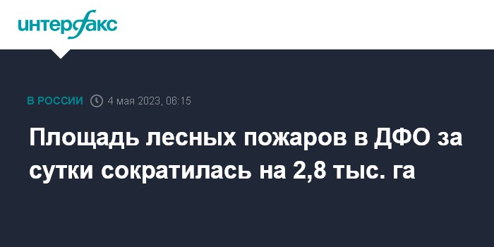 Москва. 4 мая. INTERFAX.RU - Лесные пожары на площади почти 5 тыс. га тушат в четырех регионах Дальневосточного федерального округа, сообщил в четверг окружной департамент лесного хозяйства.