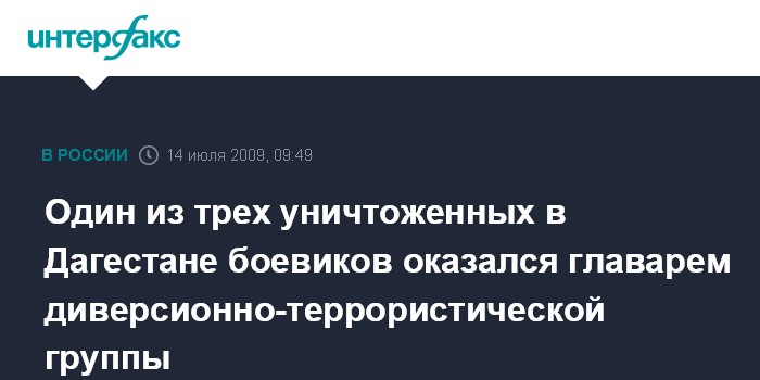 Москва. 14 июля. INTERFAX.RU - Установлены личности двоих из трех убитых в ходе спецоперации в Карабудахкентском район Дагестана боевиков, сообщил "Интерфаксу" замминистра внутренних дел Дагестана Магомед Исмаилов. По его данным, убитыми оказались Магомед Батырбеков и Магомедмурад Османов.