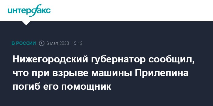 Москва. 6 мая. INTERFAX.RU - Мужчина, погибший в результате взрыва машины писателя Захара Прилепина, был его помощником, сообщил в субботу губернатор Нижегородской области Глеб Никитин.