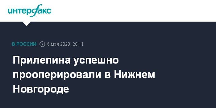 Москва. 6 мая. INTERFAX.RU - Медики в Нижнем Новгороде провели операцию писателю Захару Прилепину, пострадавшему при взрыве его автомобиля, сообщил губернатор Нижегородской области Глеб Никитин.