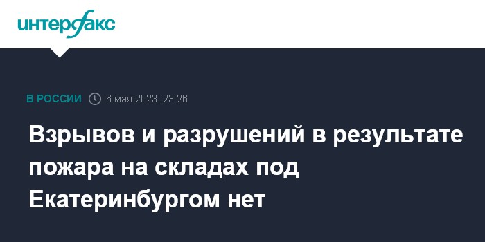 Москва. 6 мая. INTERFAX.RU - Один склад сгорел в поселке Первомайский в Свердловской области, второй еще горит, взрывов и разрушений нет, сообщили "Интерфаксу" в экстренных службах.
