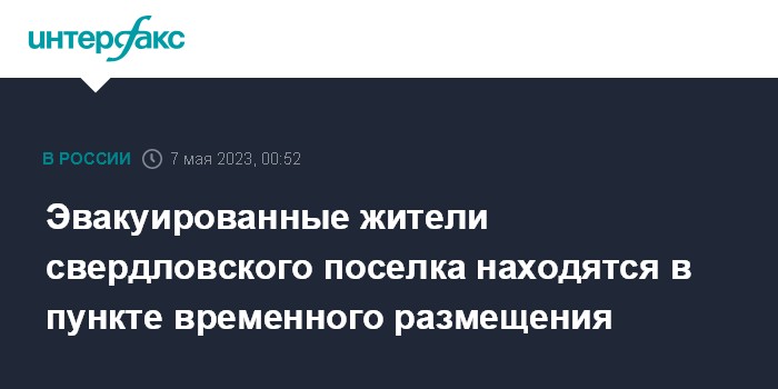 Москва. 7 мая. INTERFAX.RU - Более 30 жителей поселка Первомайский Свердловской области, которых эвакуировали из-за пожара на складах с порохом, находятся в двух пунктах временного размещения (ПВР), сообщили "Интерфаксу" в администрации Режевского городского округа.