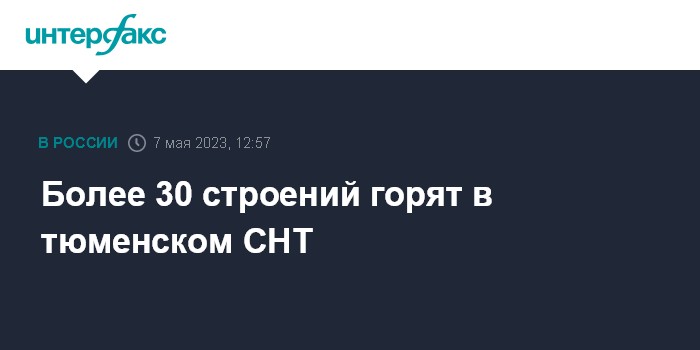 Москва. 7 мая. INTERFAX.RU - Пожарные тушат огонь на территории садового товарищества в Тюменской области, горят 32 строения, сообщает пресс-служба регионального МЧС.