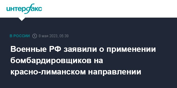 Москва. 8 мая. INTERFAX.RU - В российской группировке войск "Центр" заявили о применении бомбардировочной авиации против украинских войск на красно-лиманском направлении.