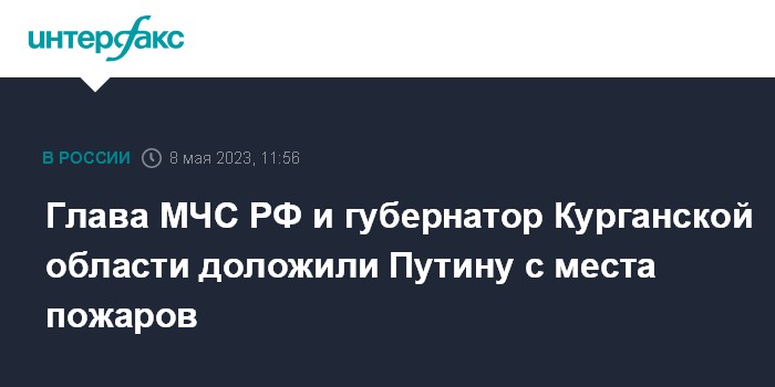 Москва. 8 мая. INTERFAX.RU - Глава МЧС РФ Александр Куренков и глава Курганской области Вадим Шумков доложили президенту России Владимиру Путину о ситуации с пожарами в Курганской области.