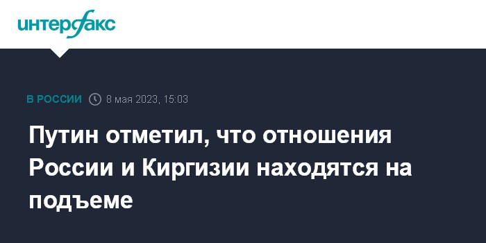 Москва. 8 мая. INTERFAX.RU - Отношения России и Киргизии находятся на подъеме, заявил президент РФ Владимир Путин, выразив уверенность в том, что тенденция по увеличению российских капиталовложений в республику будет набирать обороты.