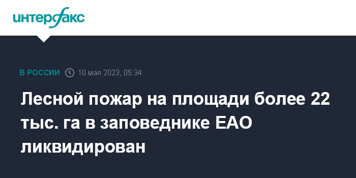 Москва. 10 мая. INTERFAX.RU - Завершилось тушение лесного пожара на территории природного заповедника "Бастак" в Еврейской автономной области, сообщает пресс-служба правительства региона в телеграм-канале в среду.