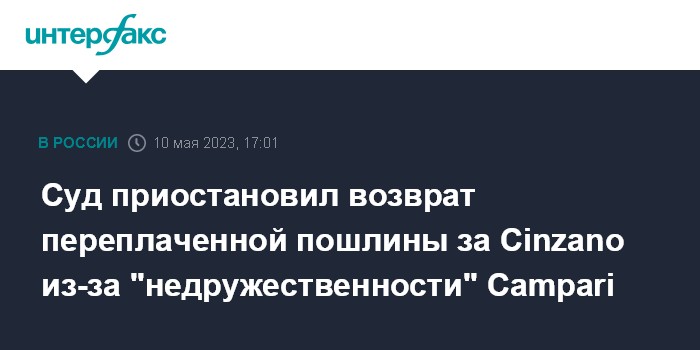 Суд приостановил возврат переплаченной пошлины за Cinzano из-за "недружественности" Campari