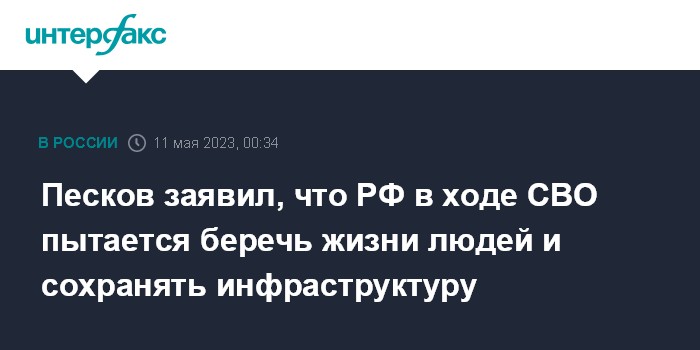 Песков заявил, что РФ в ходе СВО пытается беречь жизни людей и сохранять инфраструктуру