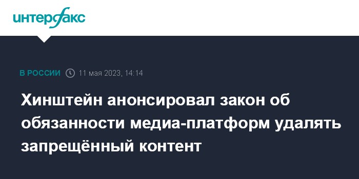 Хинштейн анонсировал закон об обязанности медиа-платформ удалять запрещённый контент
