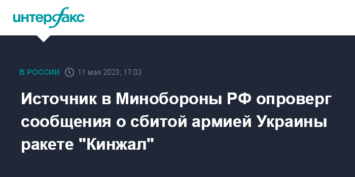 Источник в Минобороны РФ опроверг сообщения о сбитой армией Украины ракете "Кинжал"