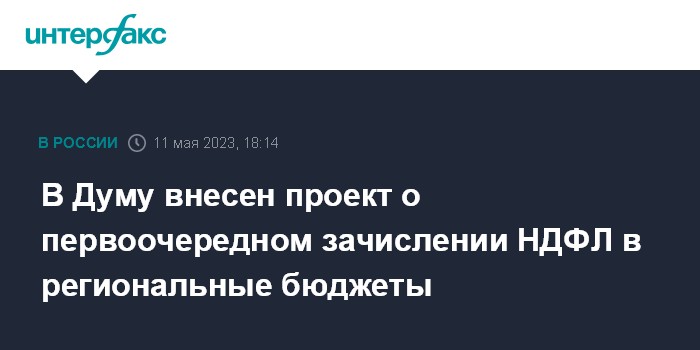 В Думу внесен проект о первоочередном зачислении НДФЛ в региональные бюджеты