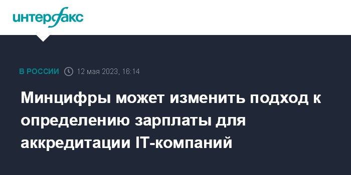 Москва. 12 мая. INTERFAX.RU - Минцифры РФ рассчитывает летом проработать вопрос об изменении подхода к оценке средней заработной платы в IT-компании для получения ею аккредитации. Об этом сообщил министр цифрового развития, связи и массовых коммуникаций Максут Шадаев.