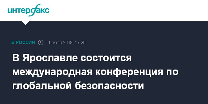 Москва. 14 июля. INTERFAX.RU - Международная конференция "Современное государство и глобальная безопасность" пройдет 14 сентября в Ярославле.