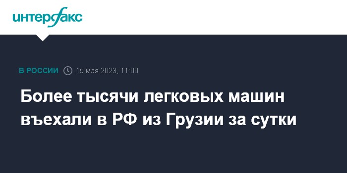 Москва. 15 мая. INTERFAX.RU - Количество въехавших в Россию из Грузии легковых автомобилей через пункт пропуска "Верхний Ларс" в Северной Осетии за сутки превысило 1,1 тыс. машин, следует из данных на сайте Северо-Кавказского таможенного управления.