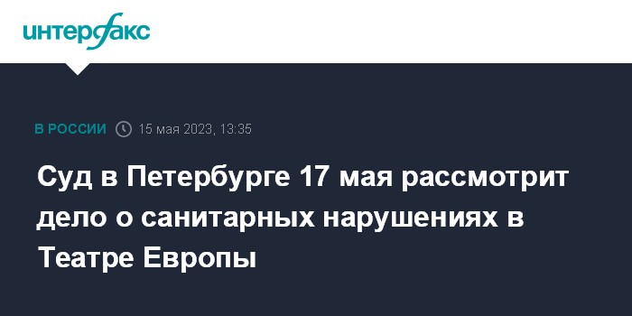 Суд в Петербурге 17 мая рассмотрит дело о санитарных нарушениях в Театре Европы