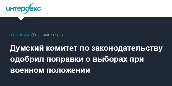 Москва. 15 мая. INTERFAX.RU - Комитет Госдумы по законодательству и госстроительству одобрил поправки в избирательное законодательство, которые прописывают порядок проведения выборов при введении военного положения.