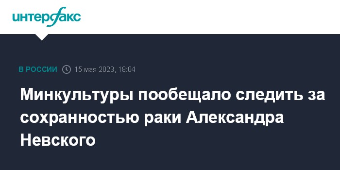 Москва. 15 мая. INTERFAX.RU - Минкультуры РФ продолжит следить за неукоснительным соблюдением мер сохранности раки Александра Невского после передачи ее из Эрмитажа в Свято-Троицкую Александро-Невскую Лавру, при этом речи об отчуждении раки из музейного фонда России не идет, заявили в ведомстве.