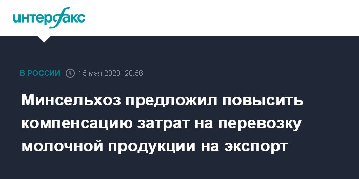 Минсельхоз предложил повысить компенсацию затрат на перевозку молочной продукции на экспорт