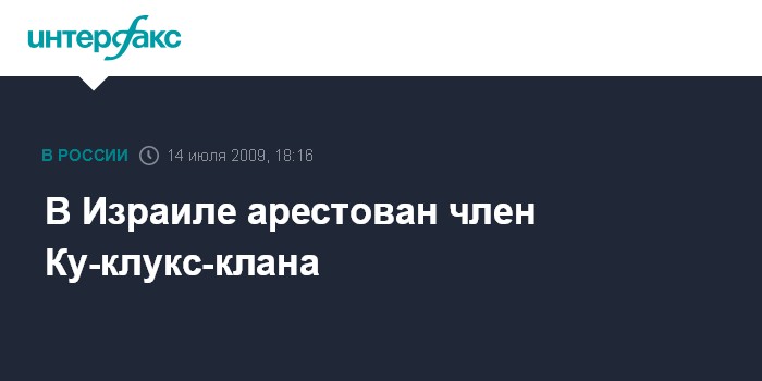 Иерусалим. 14 июля. INTERFAX.RU - Один из ведущих активистов Ку-клукс-клана, а также один из ста наиболее разыскиваемых американскими властями преступников был арестован в ночь на вторник в Тель-Авиве, сообщает во вторник газета Jerusalem Post.