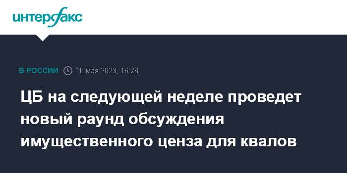 ЦБ на следующей неделе проведет новый раунд обсуждения имущественного ценза для квалов