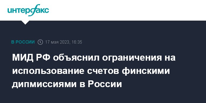 Москва. 17 мая. INTERFAX.RU - Ограничения на использование счетов финскими загранучреждениями в России введены в качестве ответной меры, заявила официальный представитель МИД РФ Мария Захарова.