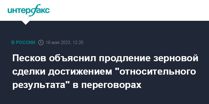 Песков объяснил продление зерновой сделки достижением "относительного результата" в переговорах