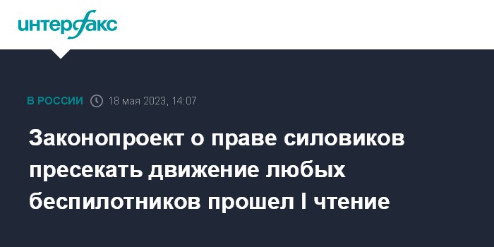 Москва. 18 мая. INTERFAX.RU - Госдума на заседании в четверг приняла в первом чтении законопроект, позволяющий силовым ведомствам пресекать движение любых беспилотников.