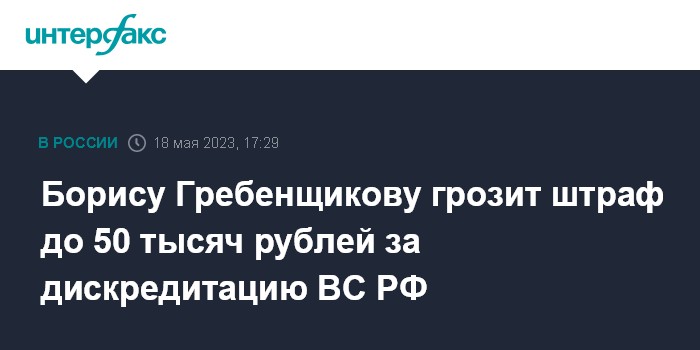 Гребенщикову вменяется совершение действий, направленных на дискредитацию использования Вооруженных сил Российской Федерации (ч. 1 ст. 20.3.3 КоАП РФ).