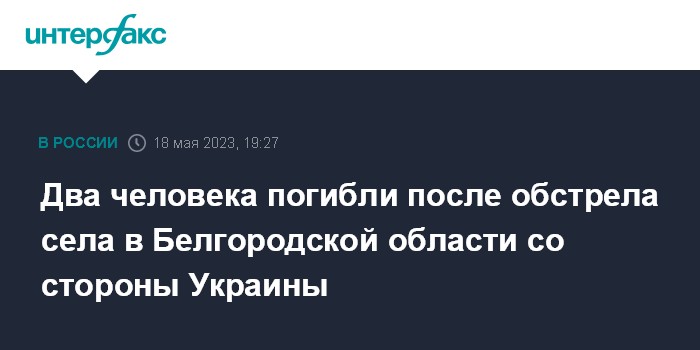 Москва. 18 мая. INTERFAX.RU - Губернатор Белгородской области Вячеслав Гладков сообщил о гибели двух человек в результате обстрела со стороны Украины.