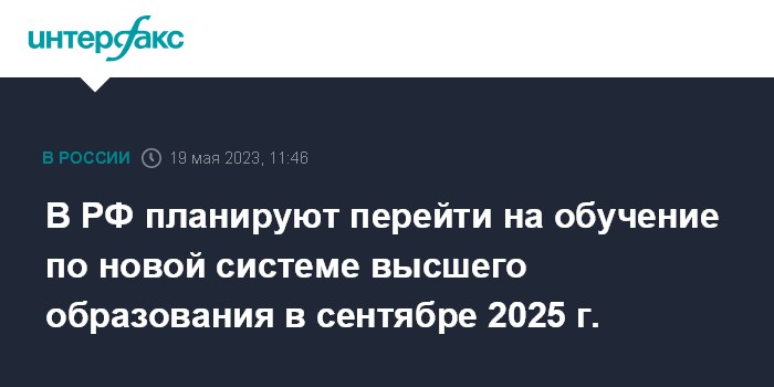 Москва. 19 мая. INTERFAX.RU - В России переход на обучение по новой системе высшего образования планируется осуществить к 1 сентября 2025 года, сообщил в пятницу глава министерства науки и высшего образования Валерий Фальков.