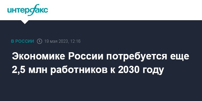 Экономике России потребуется еще 2,5 млн работников к 2030 году