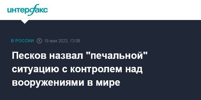 Москва. 19 мая. INTERFAX.RU - Ситуация с контролем над вооружениями и стратстабильностью в мире является неудовлетворительной, и вина за это целиком лежит на Вашингтоне, заявил пресс-секретарь президента РФ Дмитрий Песков.