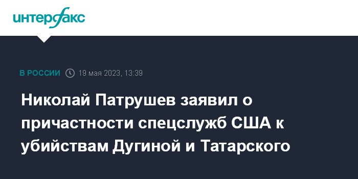 Николай Патрушев заявил о причастности спецслужб США к убийствам Дугиной и Татарского