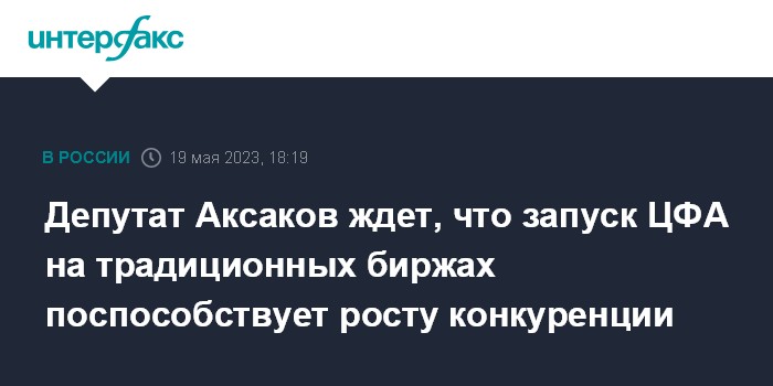 Москва. 19 мая. INTERFAX.RU - Участники рынка настороженно восприняли идею о запуске торгов цифровыми финансовыми активами на традиционных биржах, так как в данном случае рынок может перетечь от уже запущенных площадок (пока их пять) на традиционные биржи, но это только увеличит конкуренцию, считает глава комитета по финансовому рынку Госдумы Анатолий Аксаков.