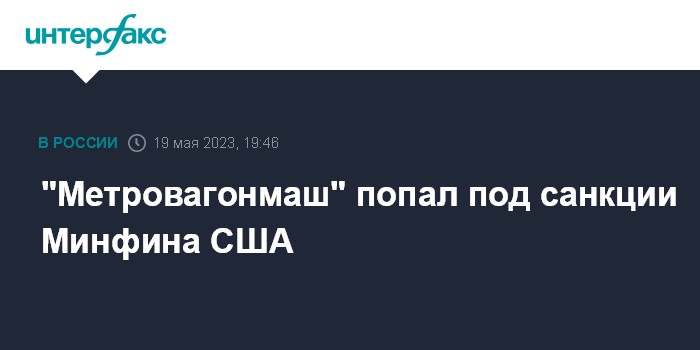 Москва. 19 мая. INTERFAX.RU - АО "Метровагонмаш" включено в санкционный список США, сообщил OFAC Минфина.