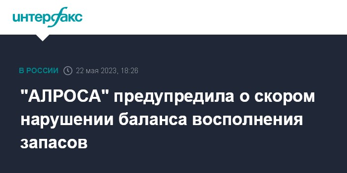 "АЛРОСА" предупредила о скором нарушении баланса восполнения запасов